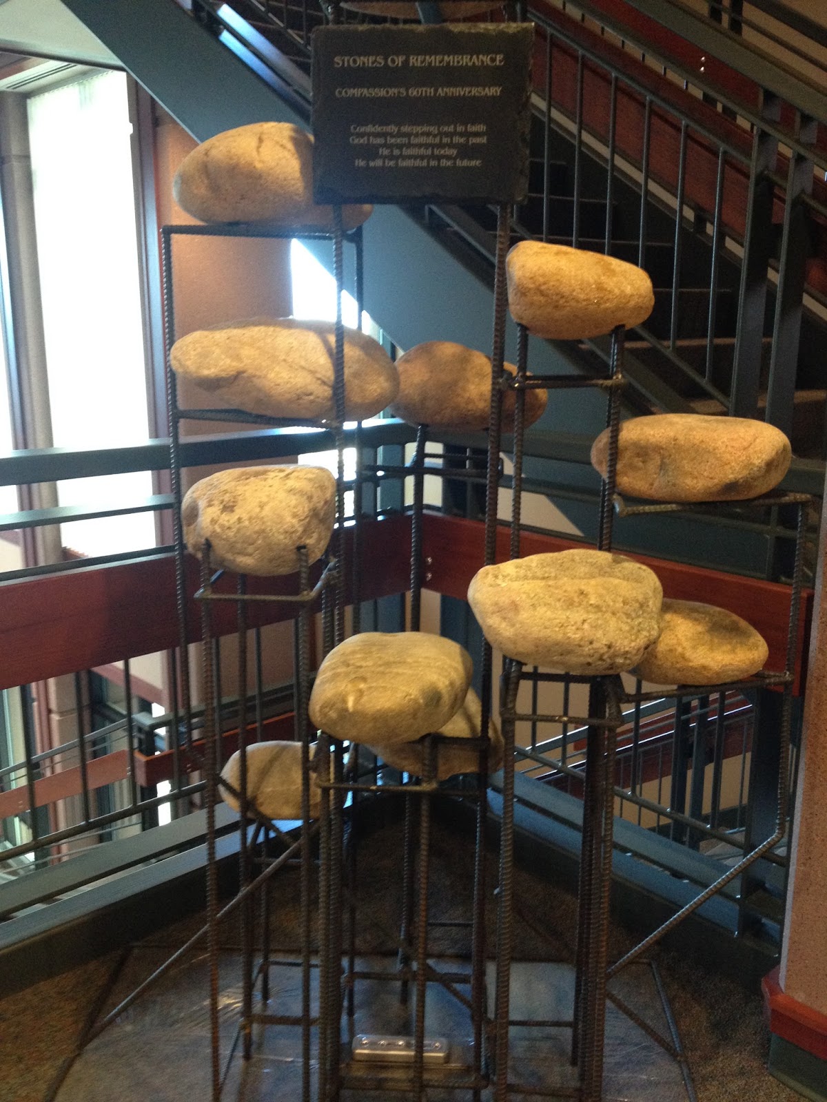 and my plan for making it my reminder to really work at changing the not-so-nice things about myself. To which he immediately responded-- as the awesome husband he is "What not-so-nice things?" I love him! Then he proceeds to tell me that they have something similar at his work. He works for Compassion International and in one of their upstairs common areas they have this great statue of several rocks displayed.